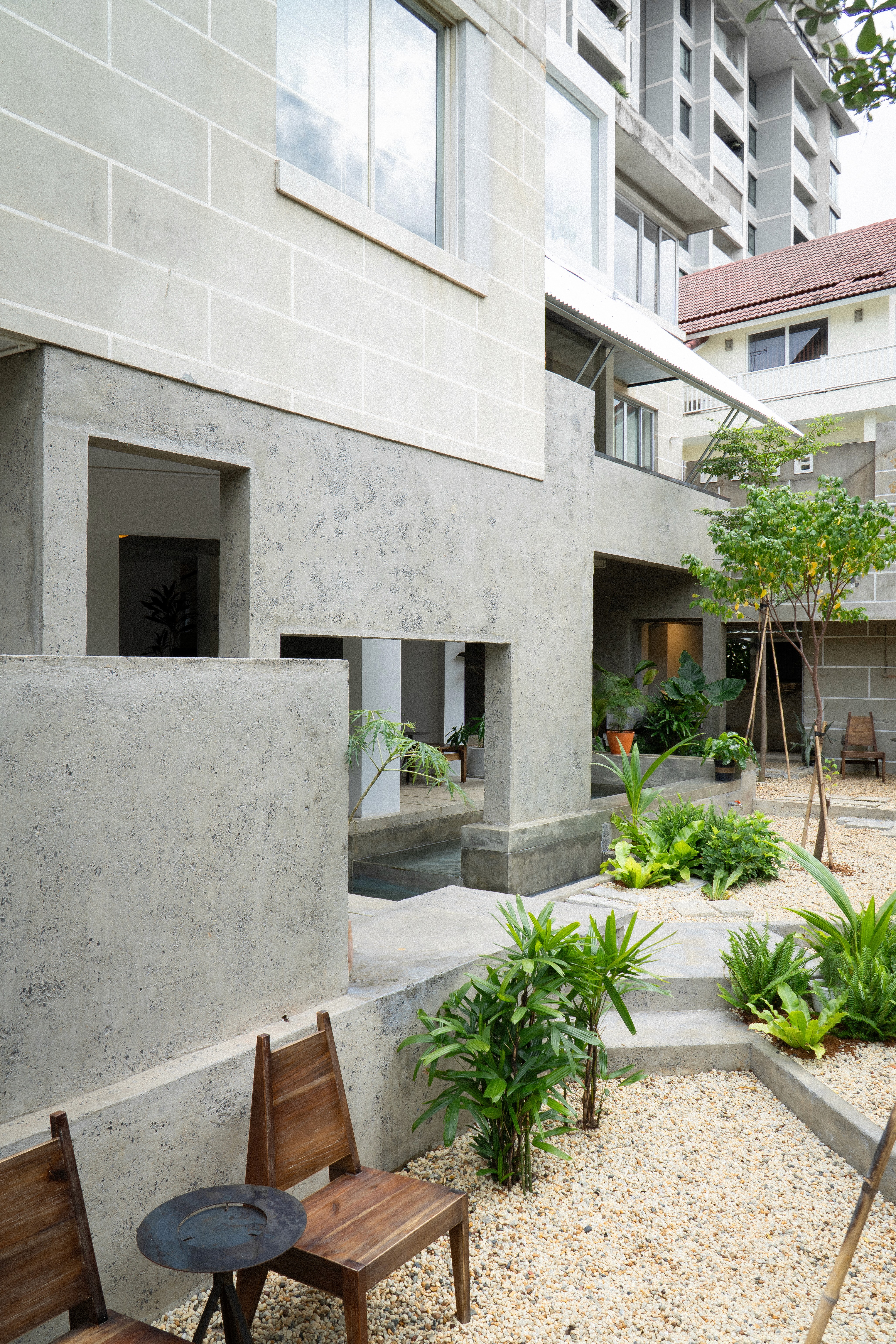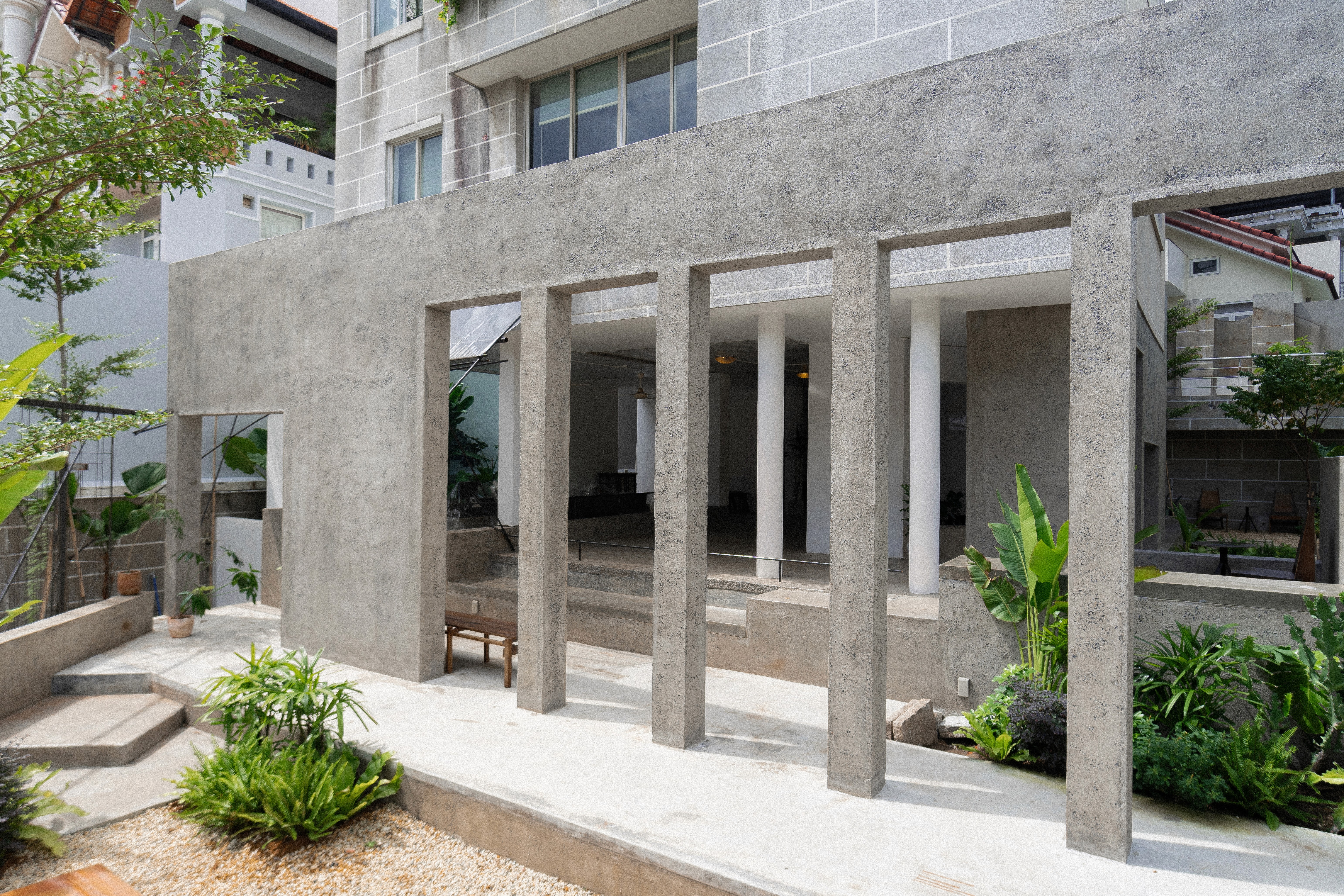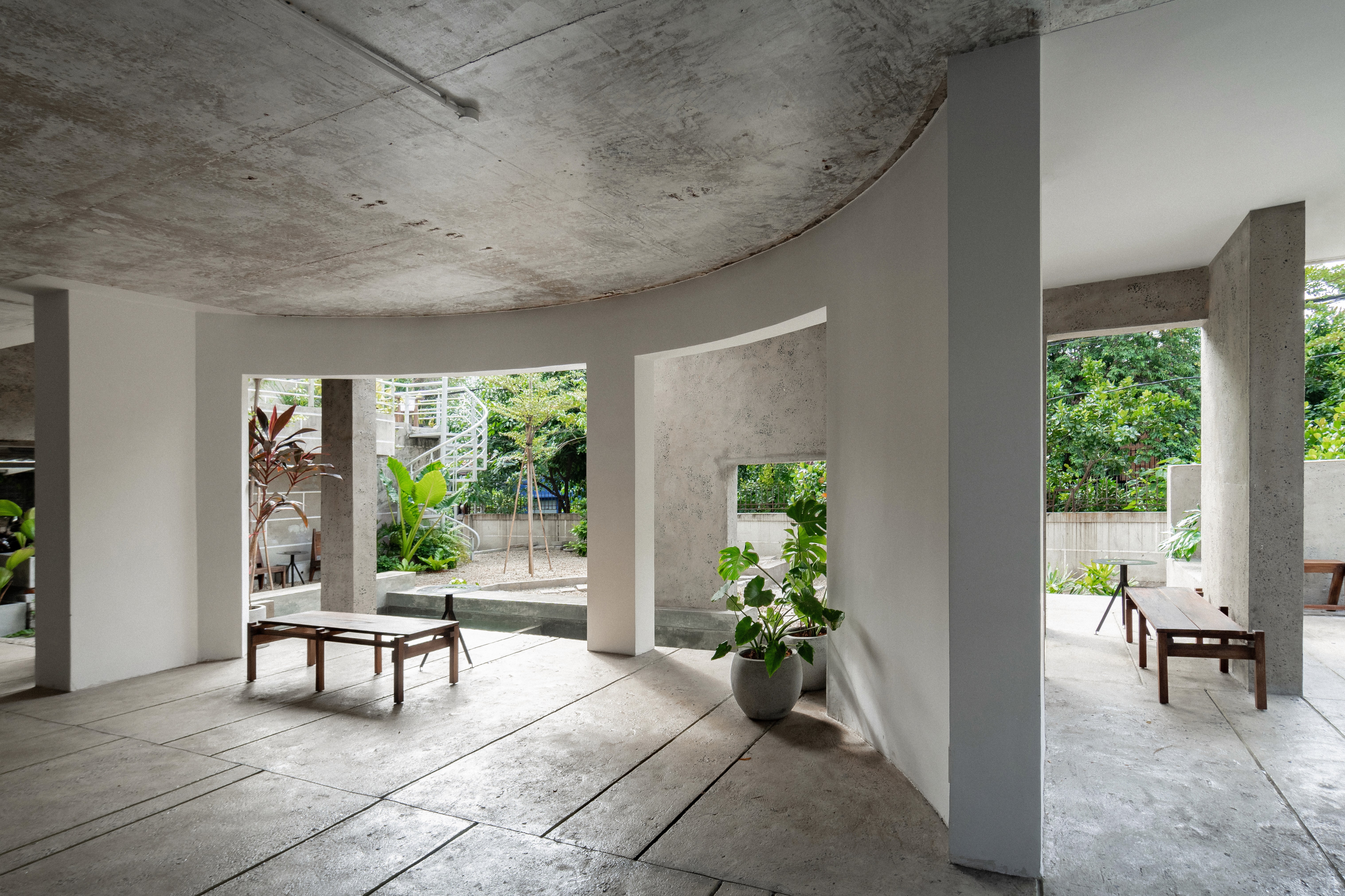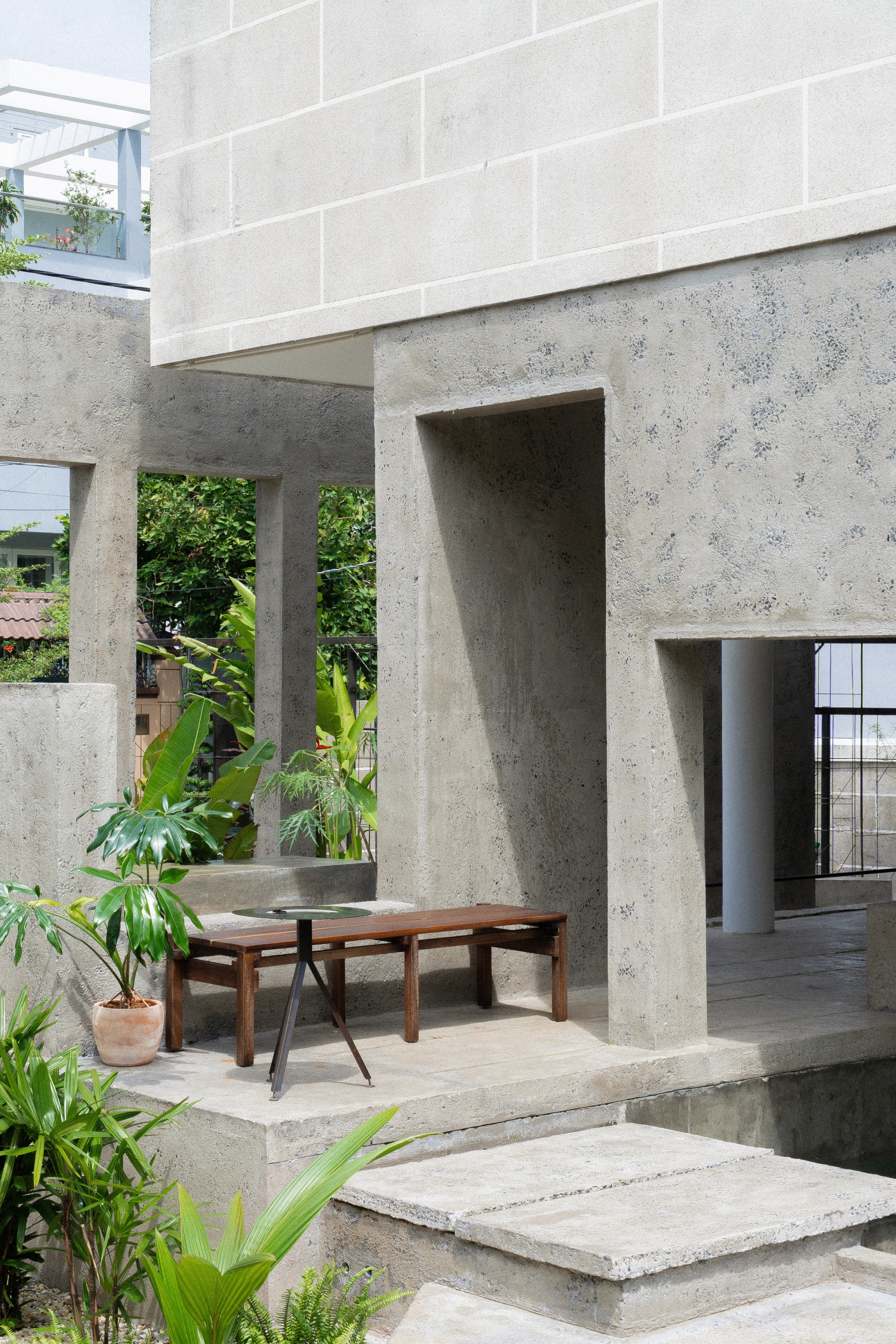 The building, prior to renovation, was an abandoned house for five years. This is a region often facing tidal flooding, prompting the former owner to establish a base floor height of 1100mm from the sidewalk – including the garden.
