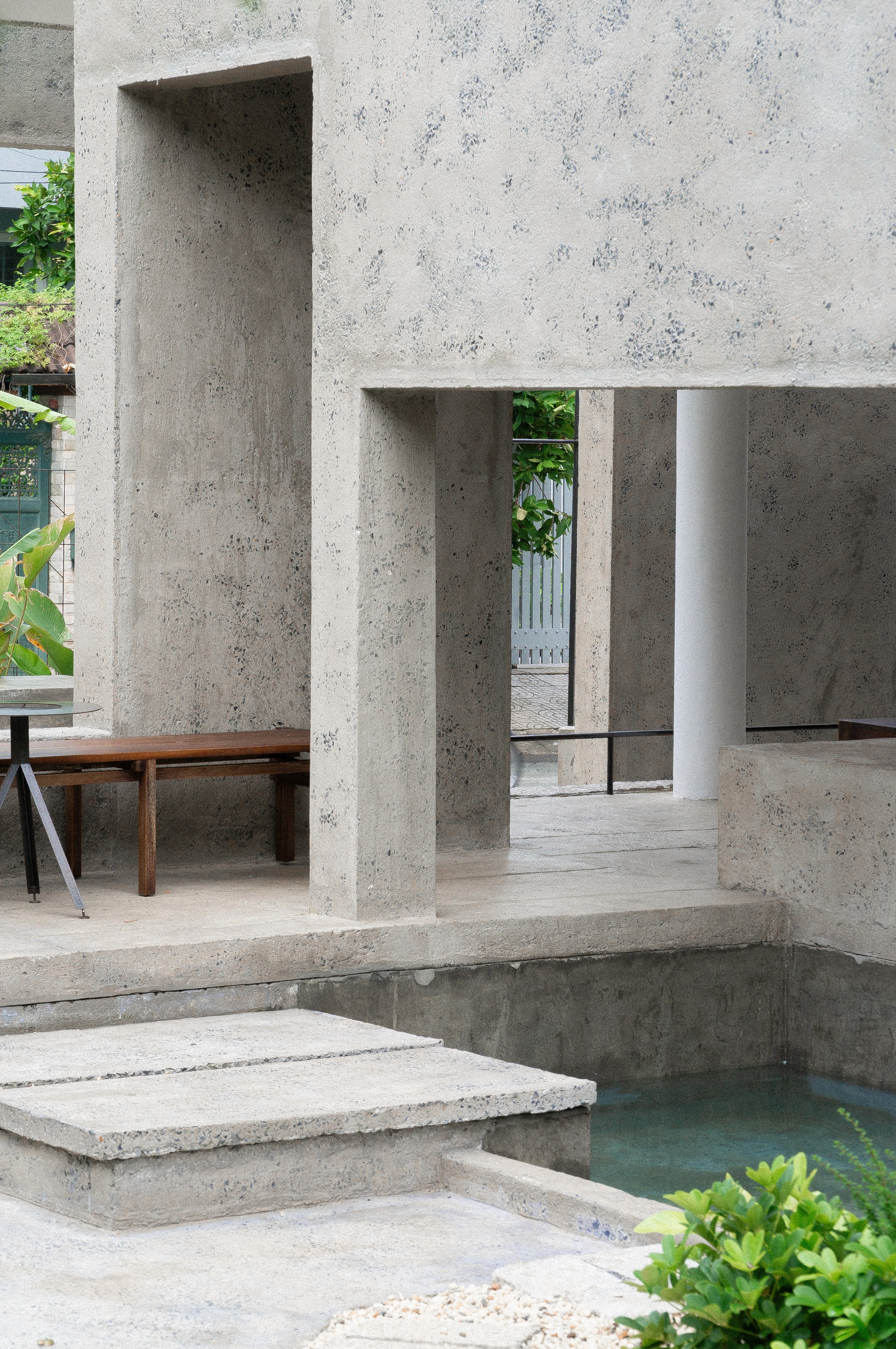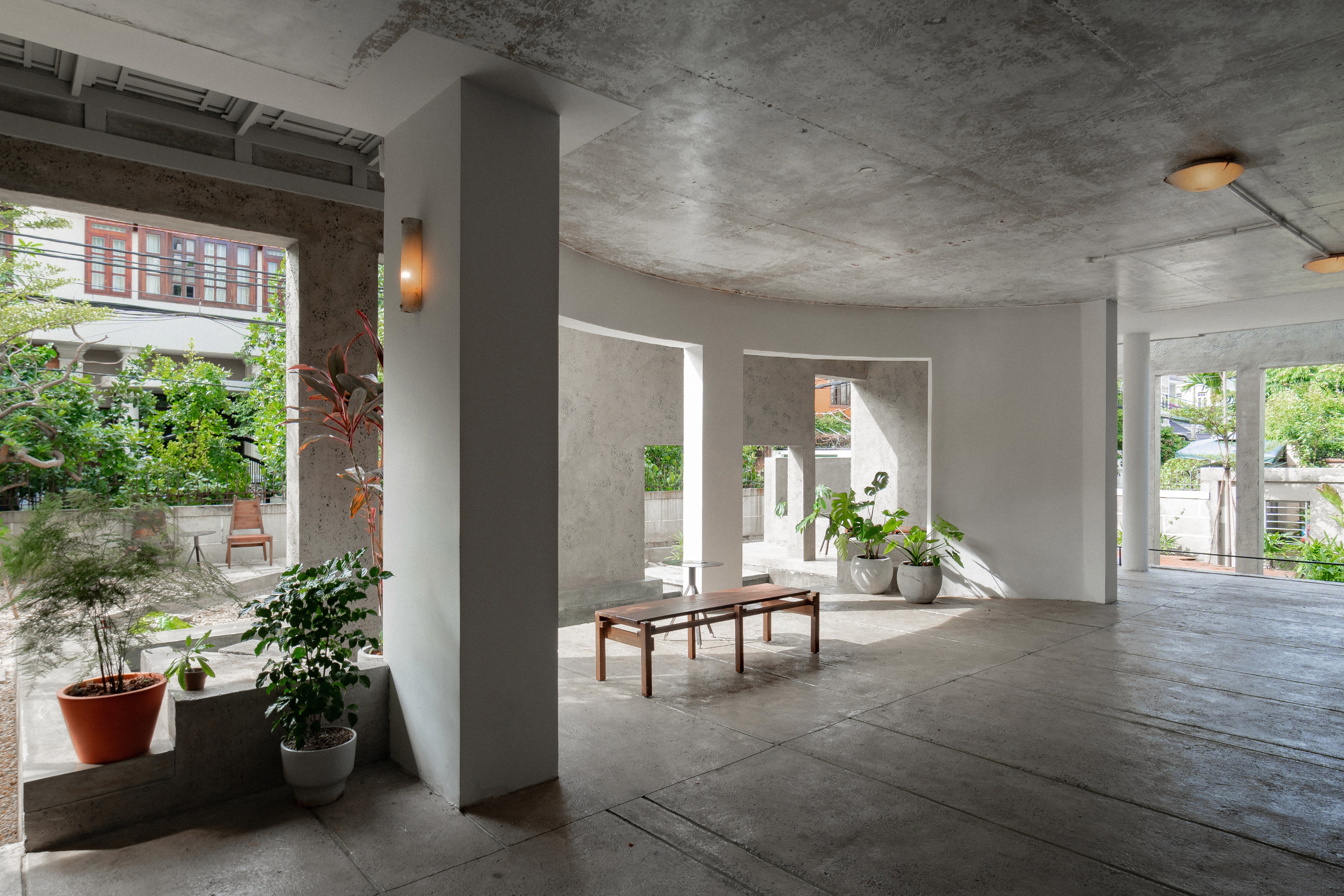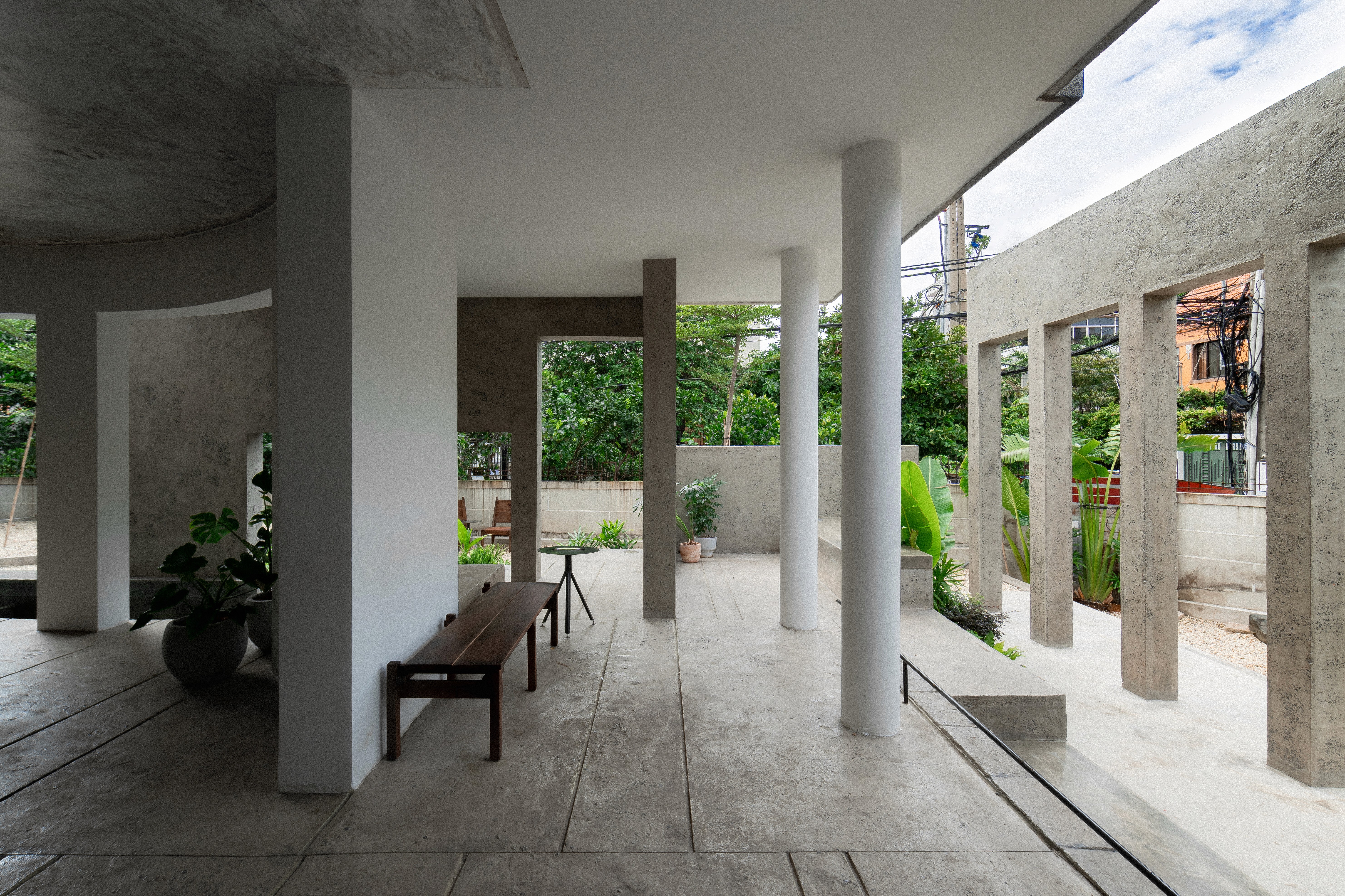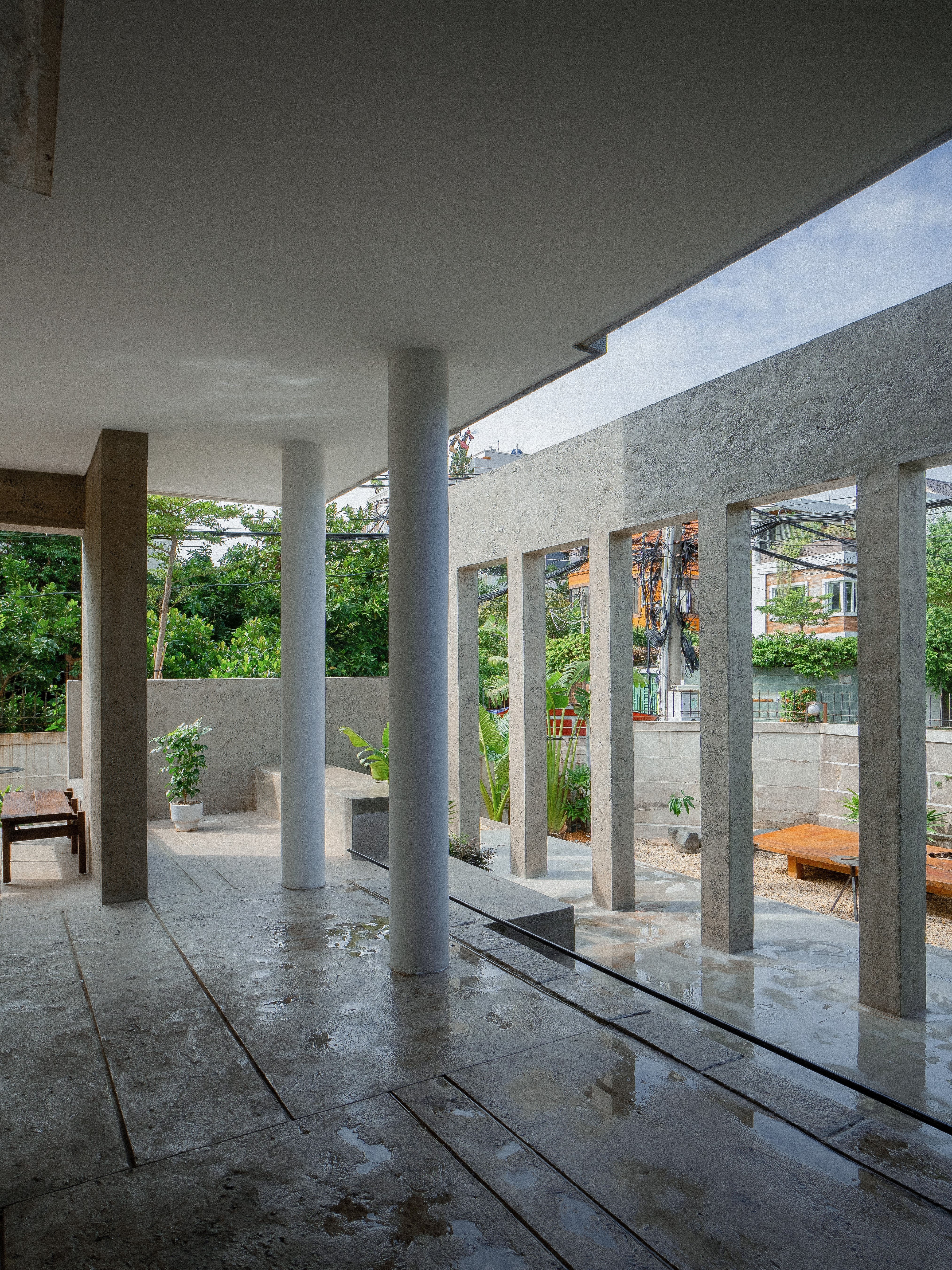 The building, prior to renovation, was an abandoned house for five years. This is a region often facing tidal flooding, prompting the former owner to establish a base floor height of 1100mm from the sidewalk – including the garden.