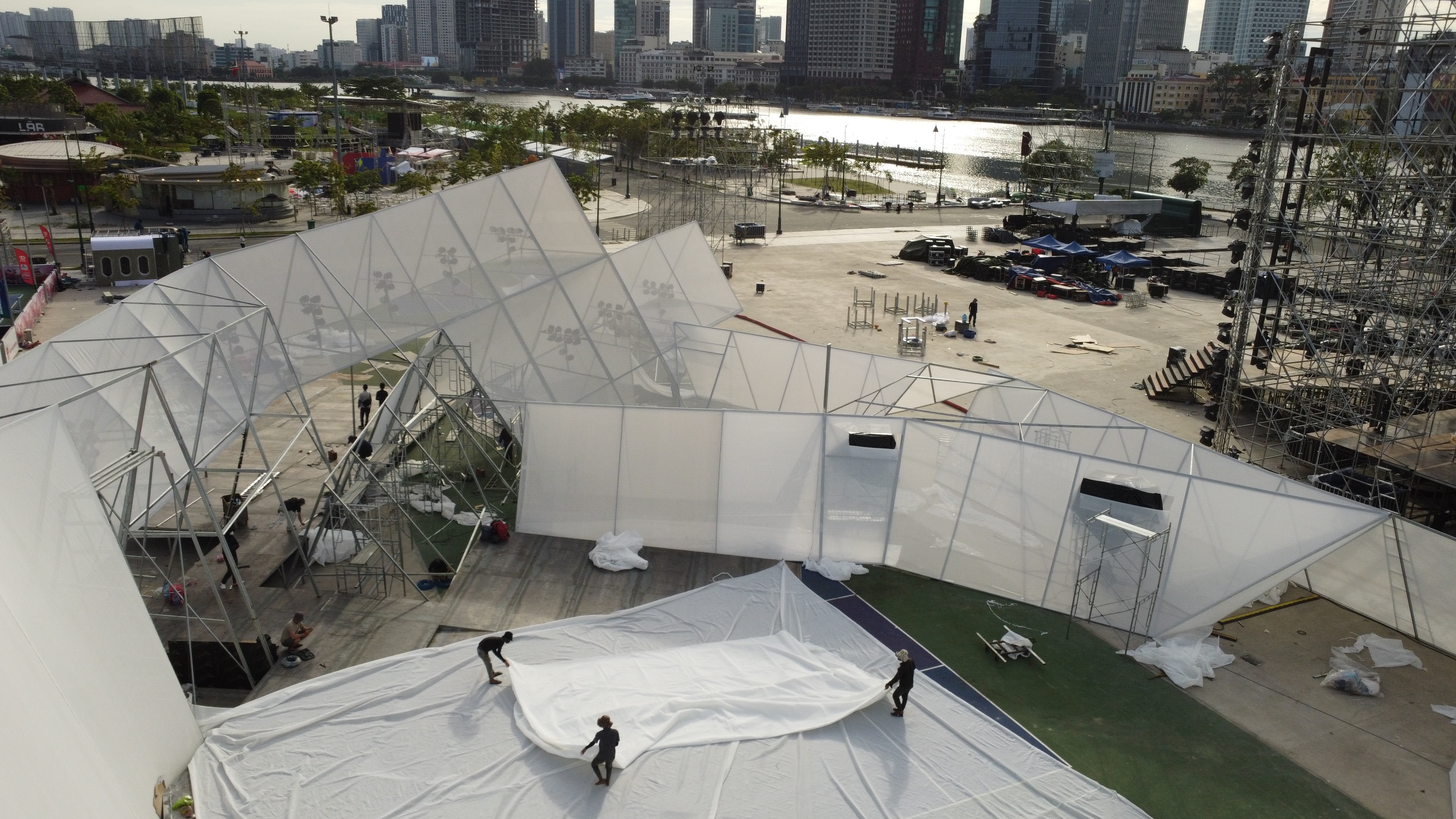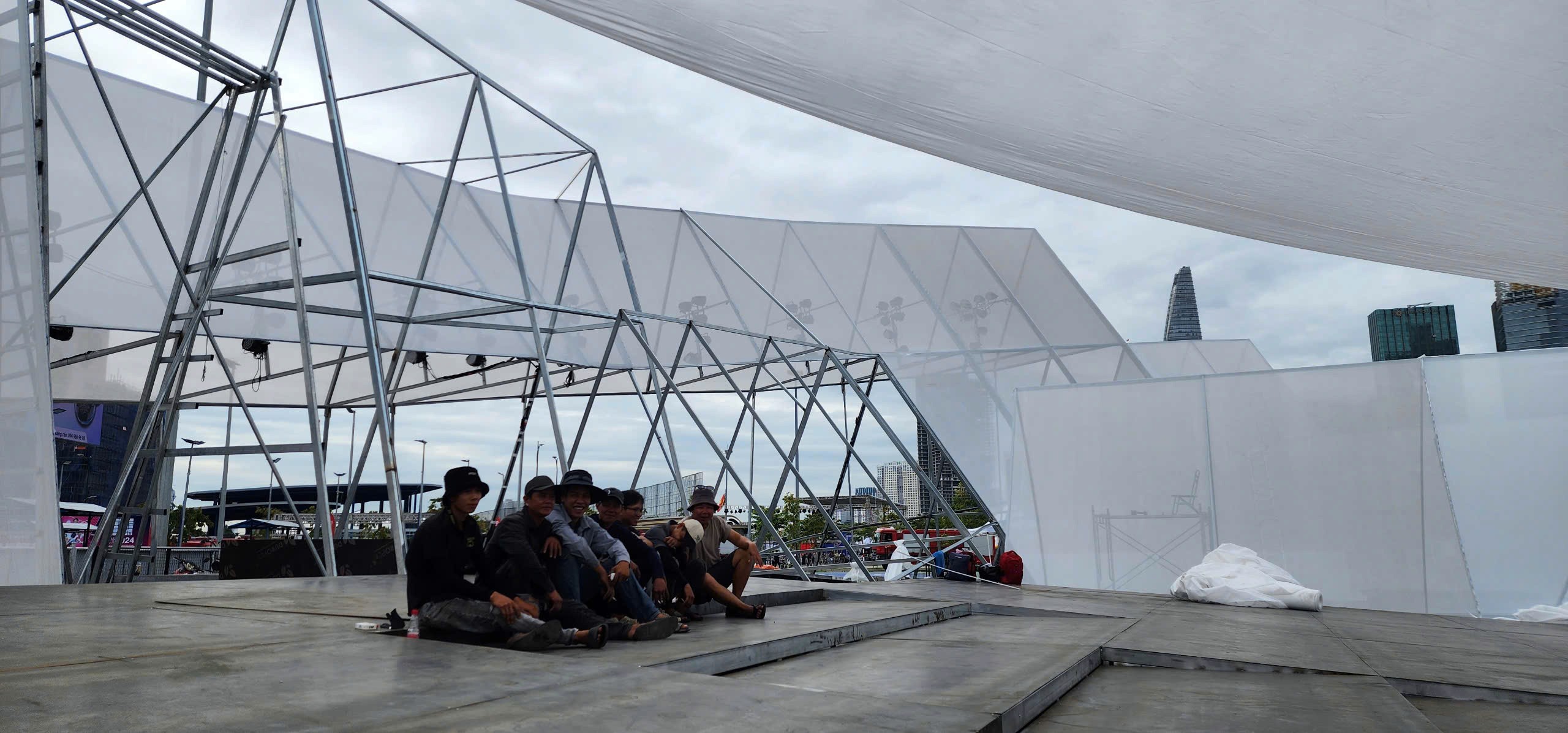 City Tet Fest is envisioned as a contemporary cultural playground—where shifts in art, technology, and popular culture meet. Developed by 324Praxis as a temporary structure for the festival, “Immersive House” operates simultaneously as an architectural experiment, exploring how built form can cultivate new relationships between people, landscape, and art.