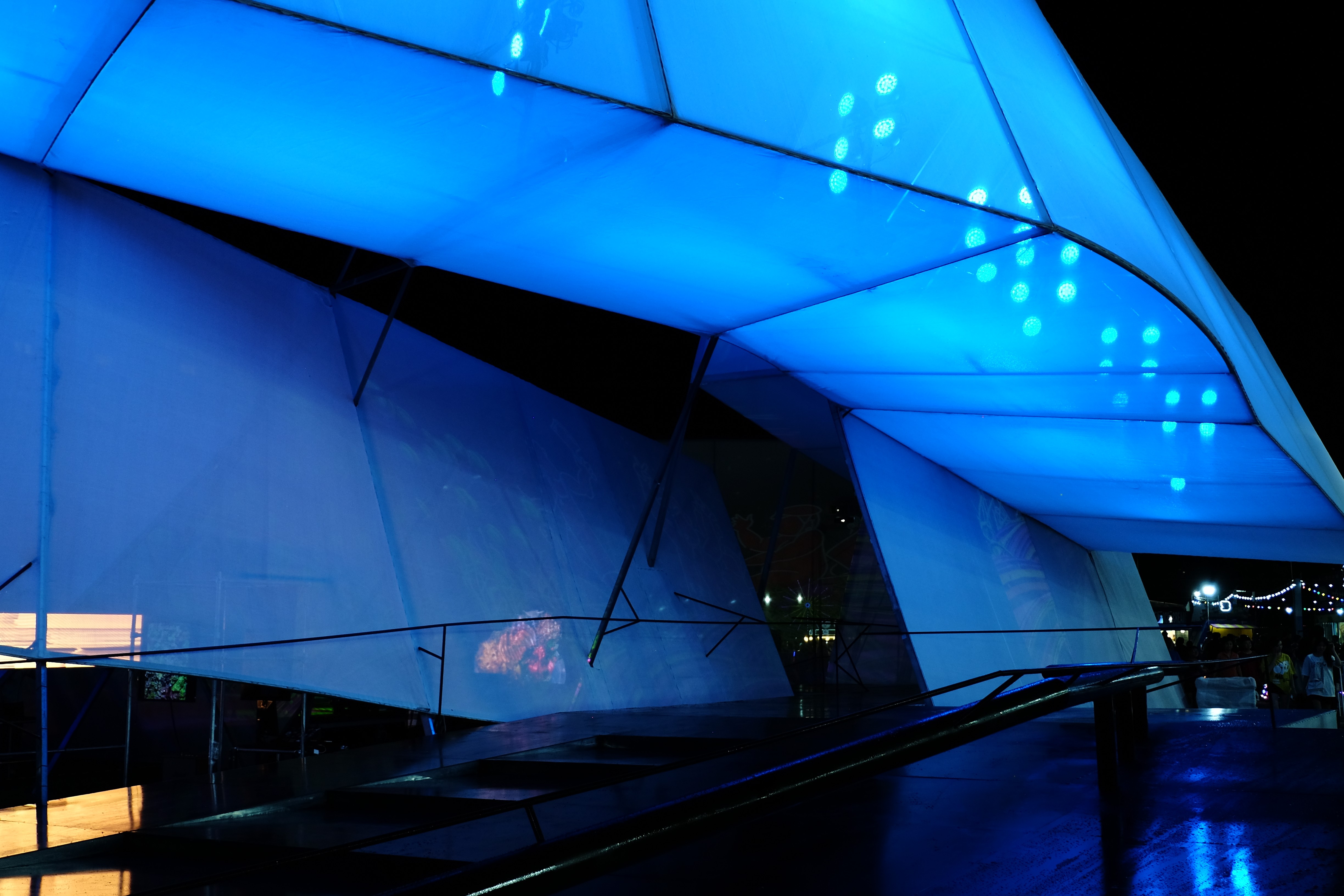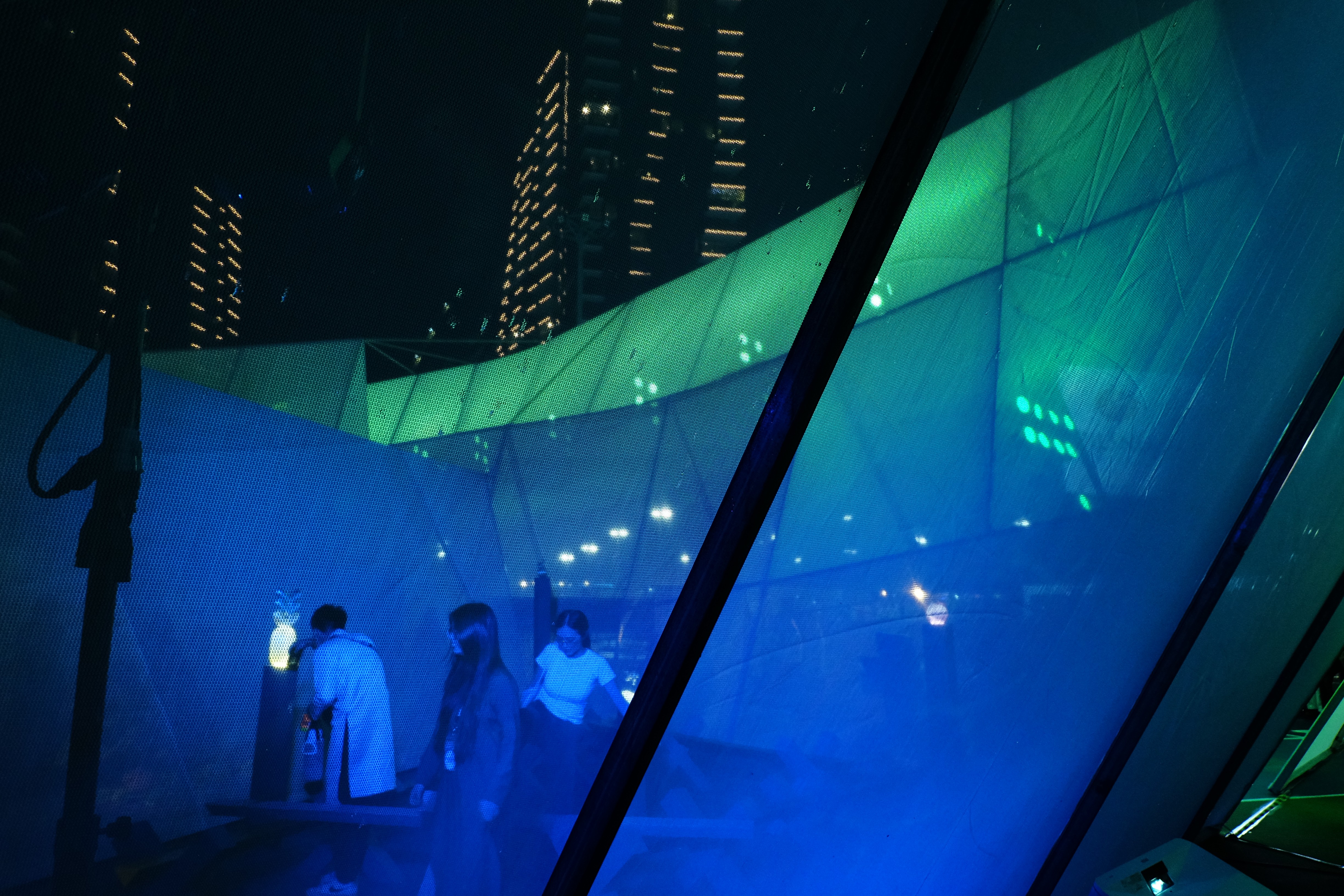 At night, Immersive House transforms into an electronic landscape—light, sound, and image generating an alternate layer of reality, reminding us that contemporary culture is constantly evolving through new materials and modes of perception.