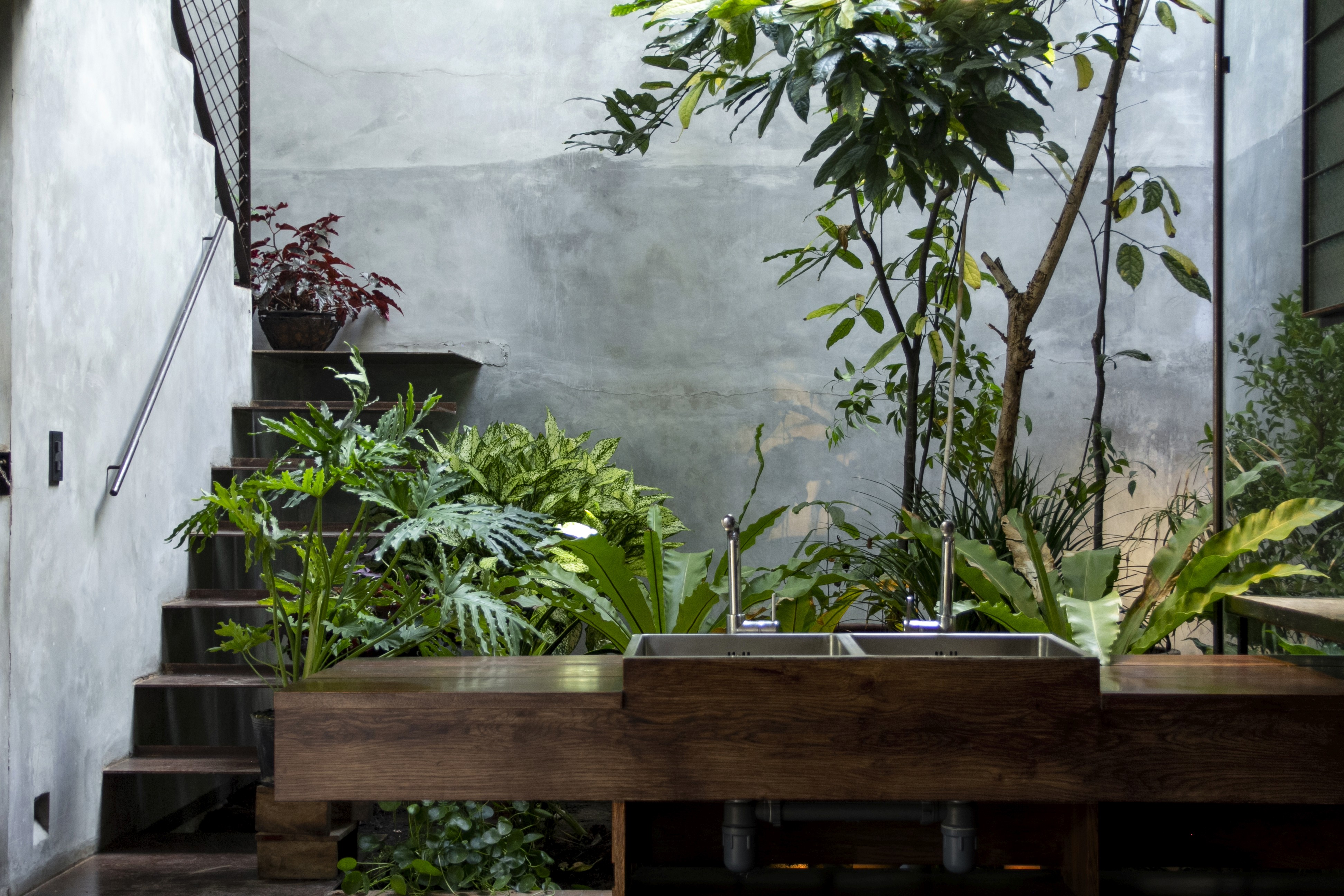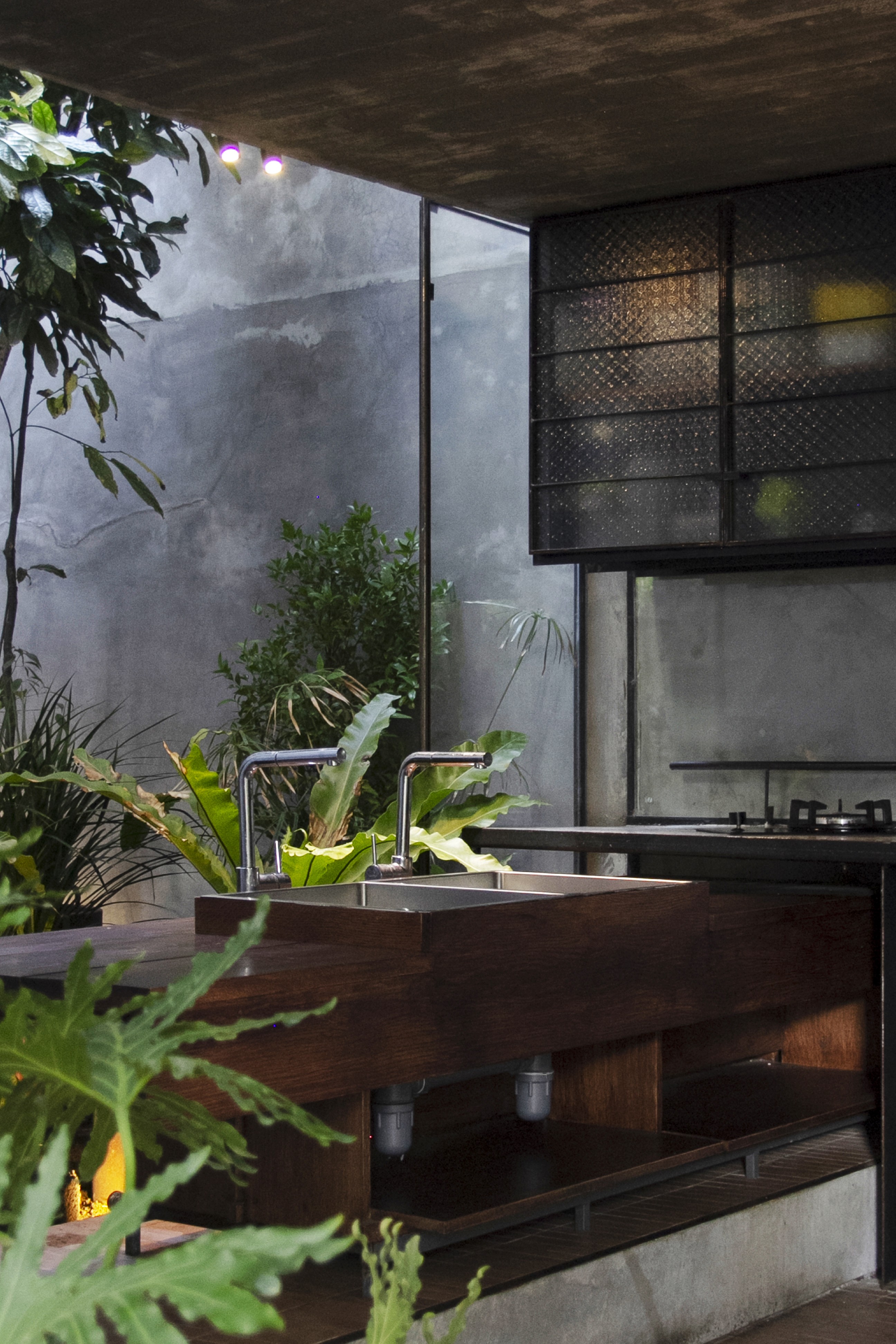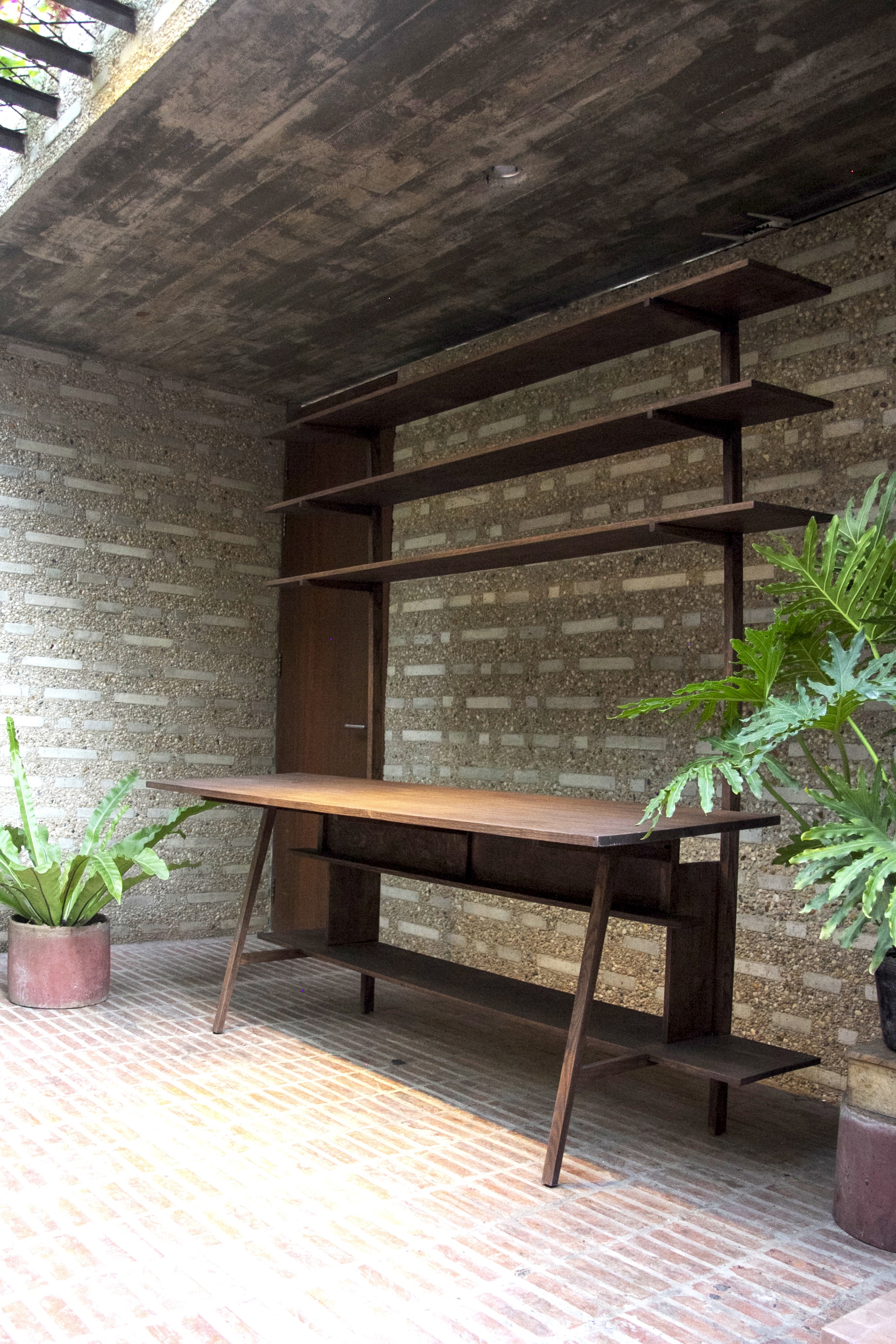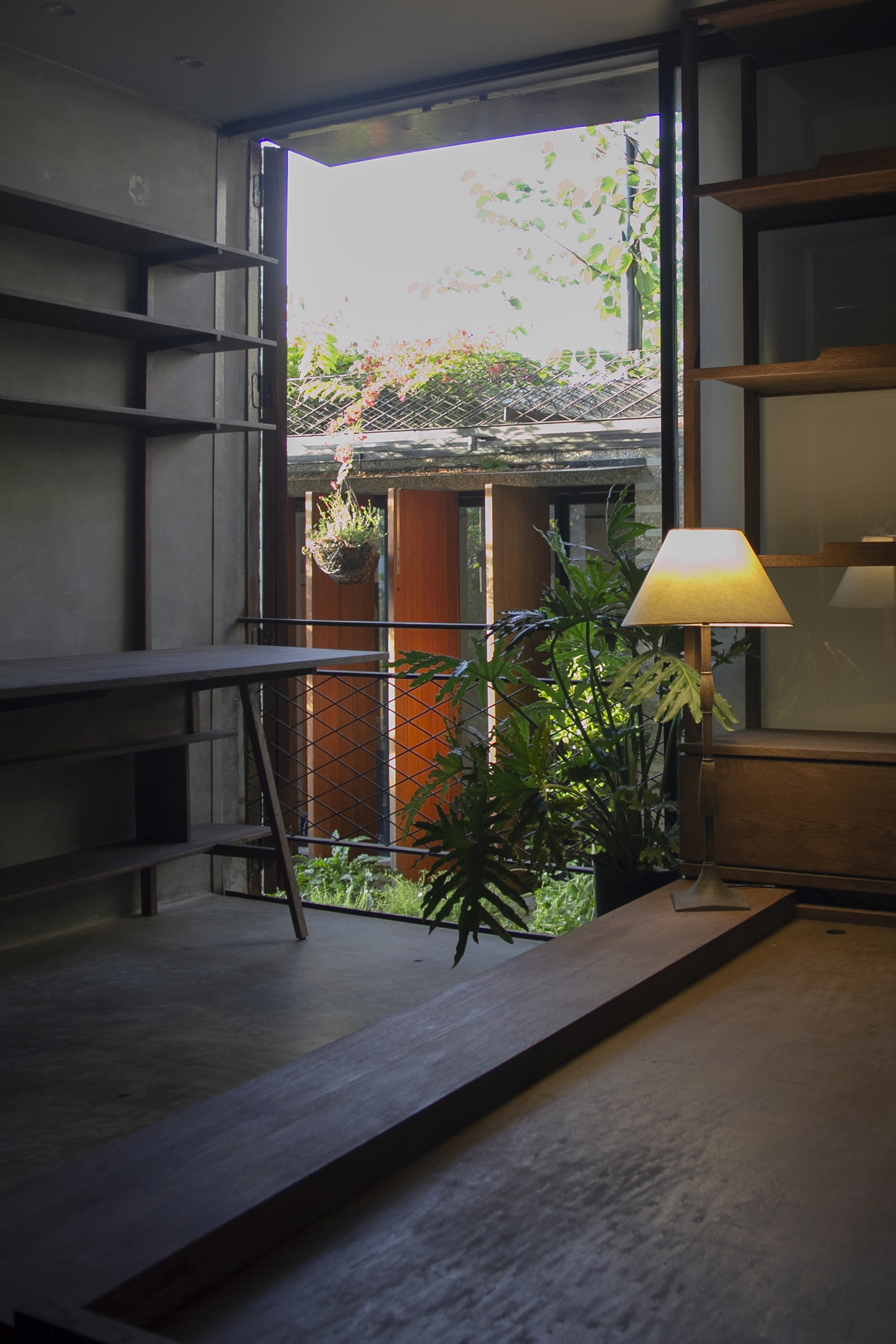 With appreciation to existed house-architecture, we joined the project as furniture designers. Architecture emphasized rough-finishing-materials with washed-concrete volumes composition, which delicatedly decribed movement of sunlight. Furniture's existence in each architectural space also needs to emphasize the scene-frames, that catching the sunlight and the continuity of inside-outside spaces. Honestly describe the framing-structure, keep the mat texture of wood as much natural as the original wood itself is, natural steel texture for doors' fragile frame and kitchen cabinets,… would be the main theme for design. Furniture's appearance in the whole picture, gently melt in rough but lively spirit of existing architecture, then play together with the beautiful walls, sunlight and greenery.